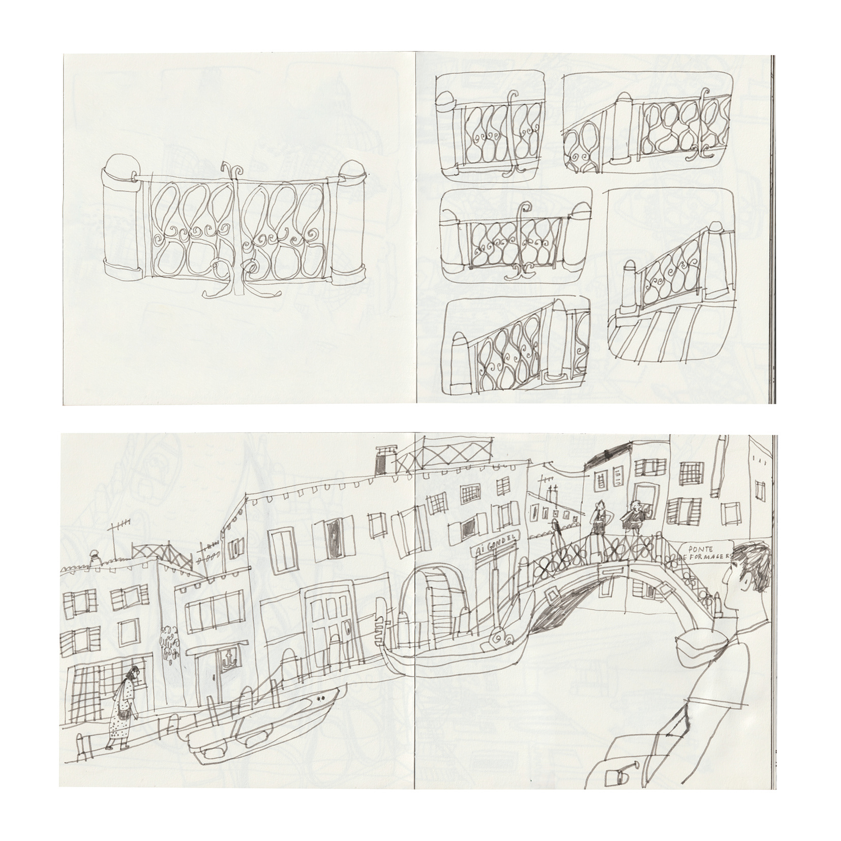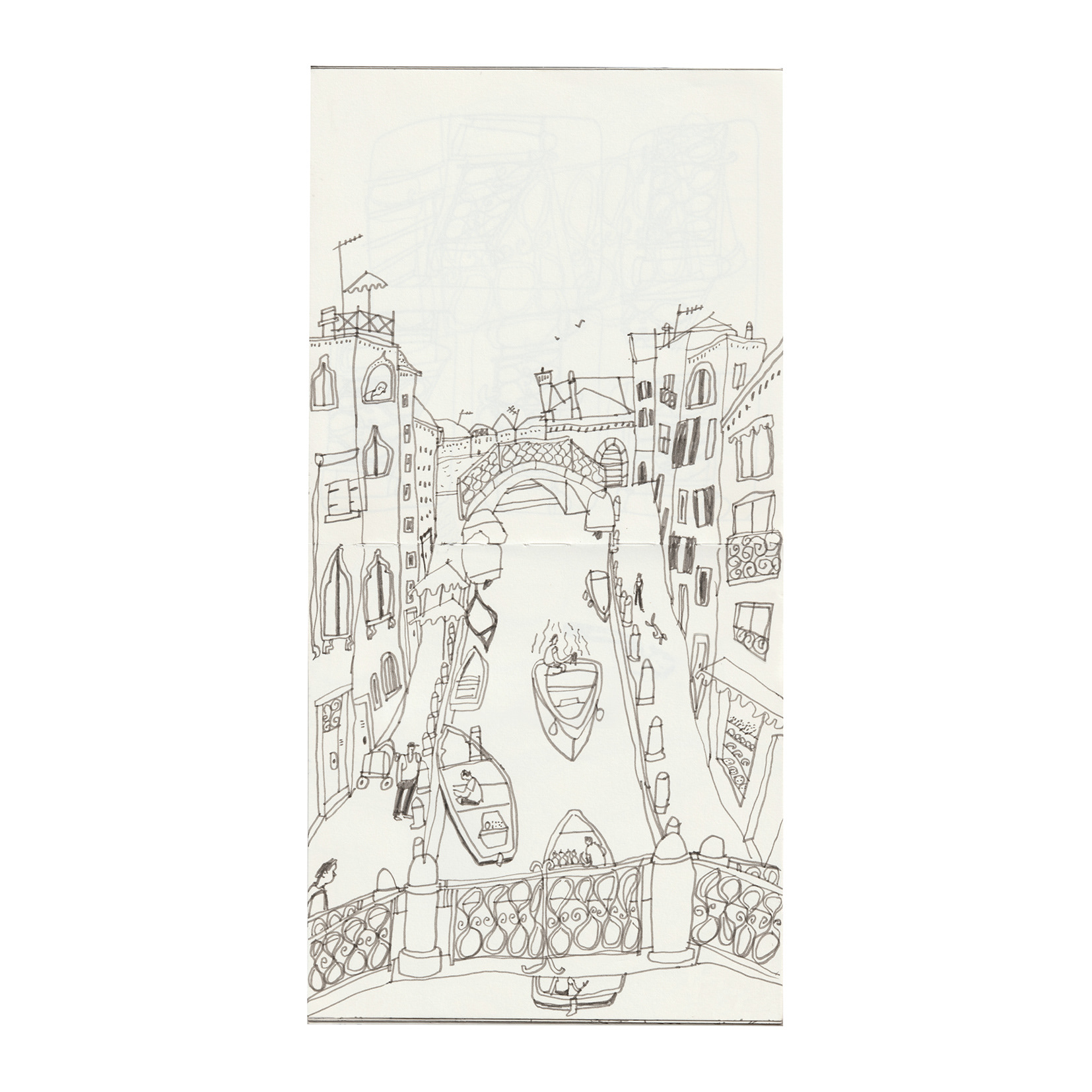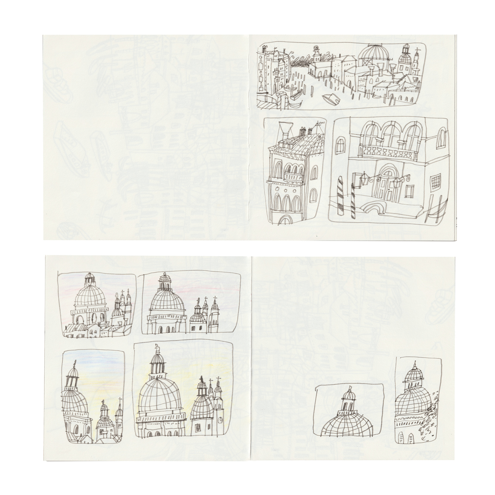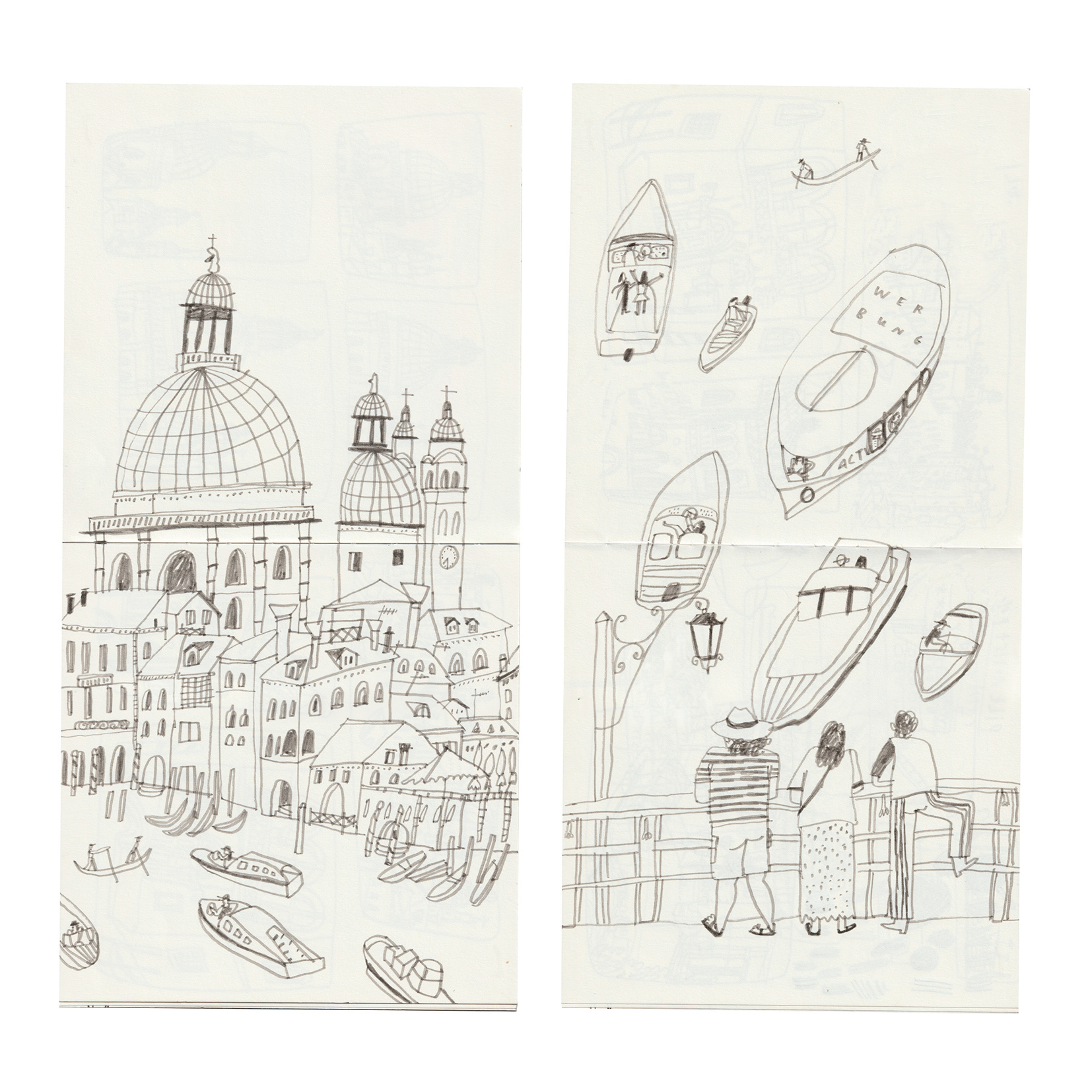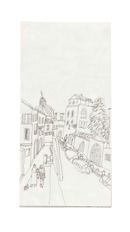 In 2024 I went to Venezia to visit the Biennale. At that time, it was almost unbearably hot in Venezia, and we hopped from exhibition to exhibition. Fortunately, I like getting up early, so my friend (who studies interior design) and I took advantage of the first cool hours of the morning from 6 a.m. onwards to sketch in the empty little alleys. I focused on the details of the Venetian buildings as well as the boat traffic and small alleys. We also took a trip to the Lido, sat by the water and drew people on the beach.