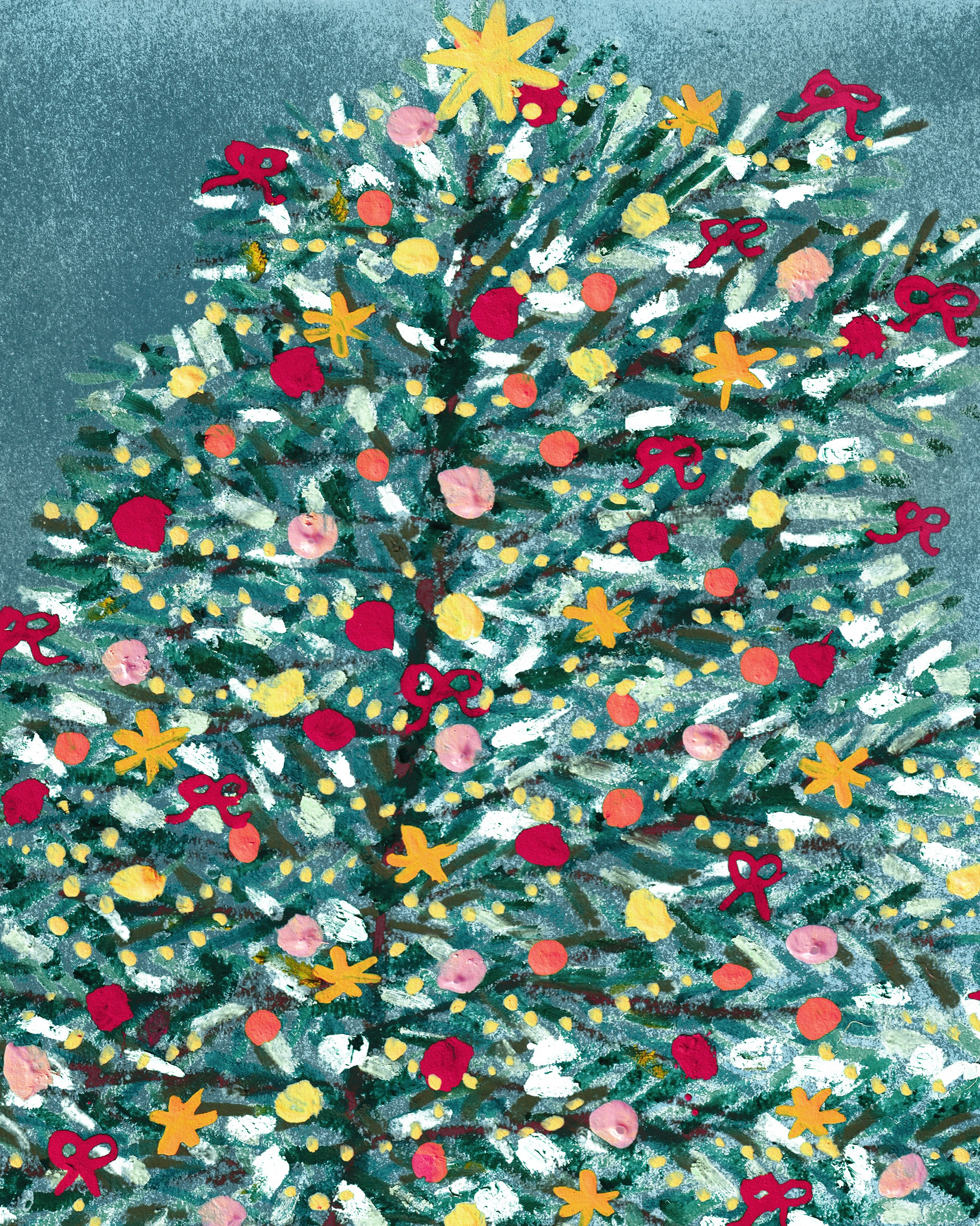 This year I created a small christmas illustration to send to publishers, business partners, colleagues and friends. I took a whole day to try out new things and just have fun. I turned on some Christmas music with my studio colleagues, placed a plate of christmas bisquits in the middle and got started. I finally tried out pan pastels and mixed them with wax crayons, coloured pencils and gouache. Later, I animated the picture so that the christmas lights on the tree glow and the snow falls.